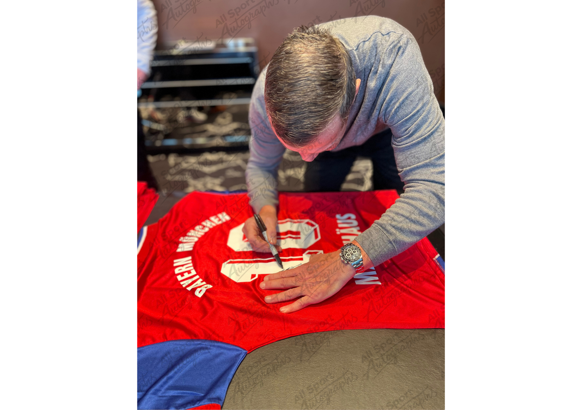 This Bayern Munich 1993/95 retro home shirt is signed by Lothar Matthäus and presented in a meticulously hand-crafted frame as part of an exclusive 20-piece collection, celebrating his legendary influence during one of the club’s most triumphant eras.