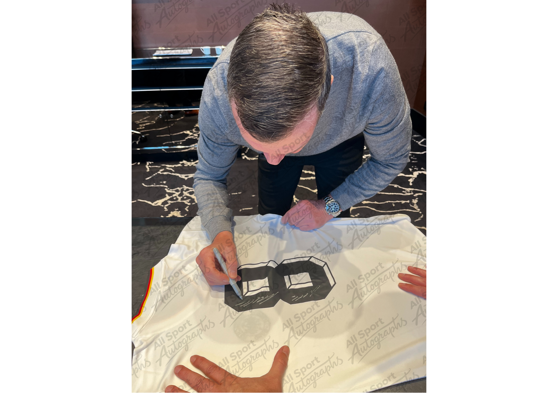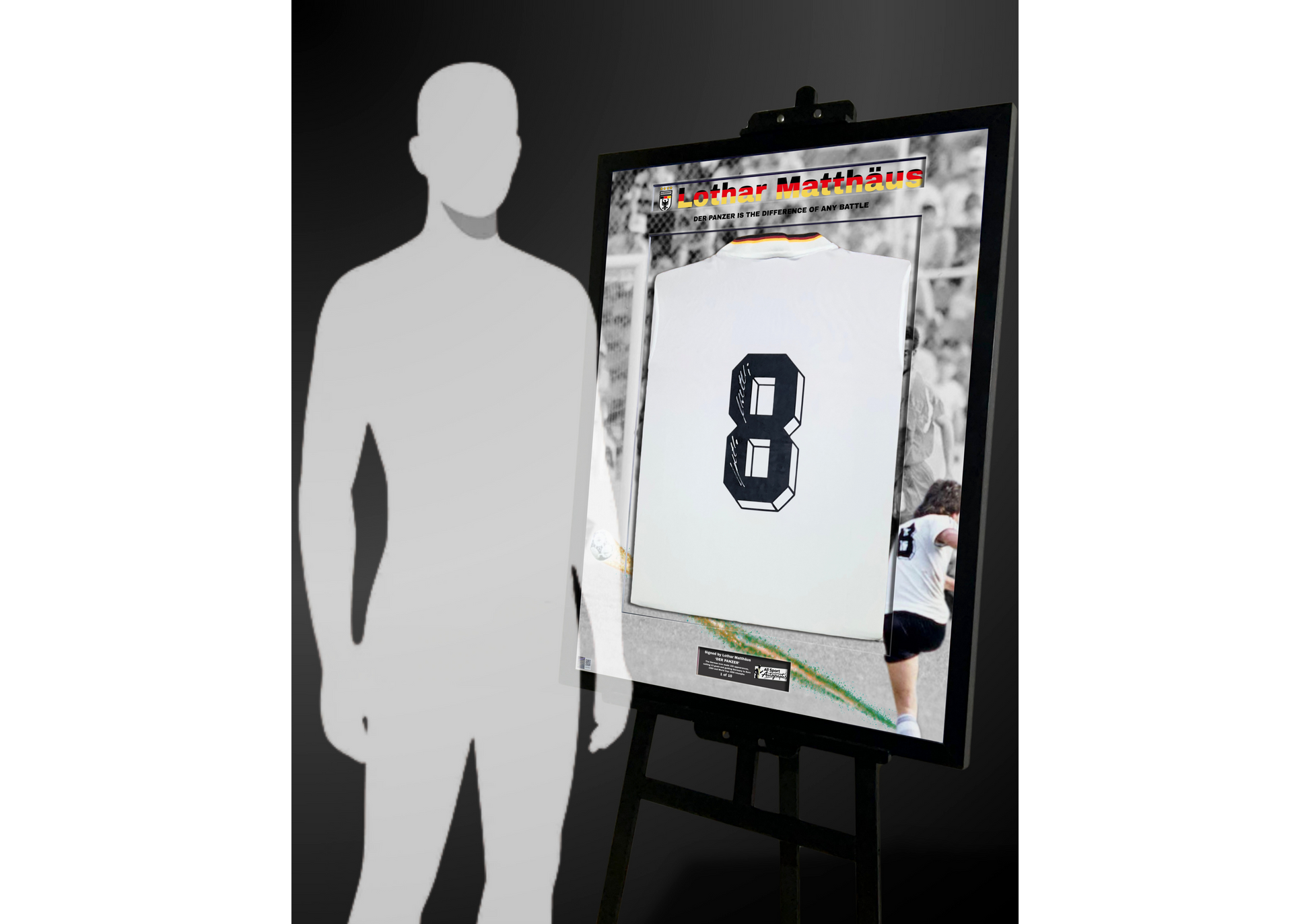 This West Germany 1986 retro home shirt is signed by Lothar Matthäus and presented in a meticulously hand-crafted frame as part of an exclusive 10-piece collection, celebrating his extraordinary impact during one of the nation’s most iconic footballing eras.